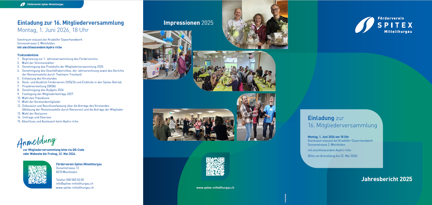 Anmeldung an die erste Mitgliederversammlung des Förderverein der Spitex Mittelthurgau. Klicken Sie hier oder rufen Sie uns an auf 058 580 50 00